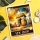 Cartão Postal Nova Deli, Índia | Vintage Painting