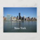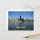 Este cartão-postal apresenta o horizonte de Nova Iorque durante o dia - a água em primeiro plano e os arranha-céus e a paisagem urbana como a principal característica da imagem.