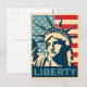 Qualquer um adoraria receber este cartão postal viagens vintage com uma ilustração retrô da Estátua da Liberdade e da bandeira americana em Nova Iorque!