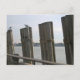 Pilares no Battery Park olhando para a Estátua da Liberdade