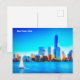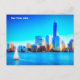 Lindas cores vibrantes, postais do horizonte urbano de Nova Iorque durante o dia. O edifício do One Trade Center está incluído. A área é um famoso atrativo turístico