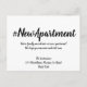 Estes anúncios em movimento são modernos e modernos! Um design simples (mas ousado) certamente se destaca. A frente contém a frase '#NewApartamento" em um texto preto com script em negrito em um fundo branco fresco. Há espaço para uma mensagem e seu novo endereço. A parte de trás do cartão contém uma saudação, espaço para uma mensagem, novas informações de contato e os nomes das pessoas da sua família.