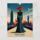 Descubra a beleza de "Nova York: Terra de Maravilhas Naturais" com este lindo cartão-postal de viagem! Este encantador cartão-postal de viagem apresenta uma mulher elegante de vestido longo e chapéu de abas largas, elegantemente posicionada em uma ponte enquanto contempla a icônica silhueta da cidade de Nova York. Carros antigos adicionam um toque nostálgico, enquanto o céu azul profundo, adornado com estrelas e elementos celestes, infunde a cena com glamour. Esta obra de arte captura lindamente o espírito vibrante e o charme atemporal do estado, tornando-o uma homenagem perfeita à magia e ao charme de Nova York.