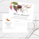 Anúncios em movimento, botânicos e modernos, permitem que amigos e familiares saibam sobre sua nova casa doce! Os recursos do design caem em verde-coloração aquosa foliar em tons de burgundy, laranja e folhas verdes com seu anúncio personalizado (mostrado com "nos movemos"), seu(s) nome(s) e mudança de endereço. Adicione uma mensagem personalizada aos amigos e à família no verso deste cartão postal tamanho com espaço para o seu carimbo e endereçamento de destinatário.