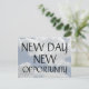 Este é um céu azul legal com nuvens brancas, design - citação motivacional que diz: "NOVA OPORTUNIDADE DO DIA" impressa em letras grandes. Perfeito para enviar a todos na família!
