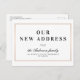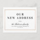 Anuncie a mudança de endereço para a família e amigos com este simples design retrô em preto e branco de letras cursivas e uma moldura dourada elegante.