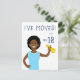 Ótima Ilustração de uma personagem feminina segurando uma chave enquanto aponta para seu novo número de casa. O cabelo, as sobrancelhas e as cores das roupas podem ser facilmente trocados.