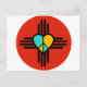 Novo México e Símbolo do Sol Zia Nativo Americano com um coração no centro e símbolo da paz em vermelho, amarelo e turquesa.