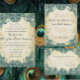 Sinais de Tabletop de Casamento Elegante Azul e Verde Paisley Peacock