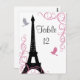 Uma simples silhueta da Torre Eiffel decora este cartão postal número da mesa, adicionando talento francês à sua noite. Este cartão postal faz parte de uma coleção completa de casamento; no entanto, se forem necessárias peças adicionais, avise-nos em prettyfancyinvites@gmail.com.