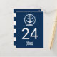 A carta de número de tabela marinho azul e branca apresenta um monograma dos nomes da noiva e do noivo e da data de casamento, ancoragem do barco e da corda, e um padrão de risca horizontal no verso. NOTA: esta é uma placa de número de tabela individual. Você deve personalizar e adicionar uma de cada placa de número de tabela necessária ao seu carrinho de compro, uma a uma.