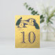 Cartão de Número da Tabela de Casamento de Peacock Dourado. Elke Clarke © para o casamento feliz em Zazzle. Esta maravilhosa design de cartas de noivado é perfeita para um casamento romântico com a habilidade de personalizar com suas iniciais de monograma. Sua design única com Dois Bons Peacocks no Vintage Banner e o texto "Sr. e Sra." em uma fonte azul escura, todos em um fundo impresso de foto de folha de ouro, criam um único cartão de número de tabela de casamento na moda. Solicite uma placa de mesa com o primeiro número. Em seguida, altere o número no menu de edição e adicione a próxima placa numérica da tabela ao carrinho até que você tenha uma placa exclusiva para cada número de tabela no carrinho.