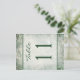 Este cartão postal verde e bege floral corresponde ao convite de casamento e a outros itens mostrados abaixo. Mantenha-o num pequeno cavalete em cada uma das suas mesas.