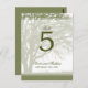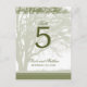 Um número da mesa de casamento com o tema do outono, com um design de carvalho verde-oliva. Altere o número de cada mesa necessária e adicione um de cada vez ao carrinho.