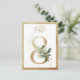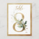 Belo cartão de número de mesa com um motivo botânico - uma ilustração aquosa de folhagem verde e números de efeito do ouro. Mesa 8. Verifique todos os números disponíveis