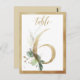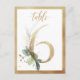 Belo cartão de número de mesa com um motivo botânico - uma ilustração aquosa de folhagem verde e números de efeito do ouro. Mesa 6. Verifique todos os números disponíveis