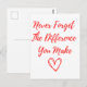 Cartão Postal Nunca Esqueça a Diferença que Você Faz, Grato
