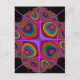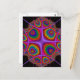 Um design com medalhões concêntricos irregulares, psicodélicos, dentro de um quadro quadrilateral virado.