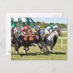 Corrida em grama do Parx Rcing e Cassino. Tasit, um cavalo branco puro quebrando na frente de um grupo bem unido de thoroughbreds musculosos. Os cavaleiros estão se posicionando enquanto seus cavalos lutam pela posição.
