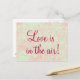 O amor está no cartão da cotação do ar com cores de primavera bokeh rosa e verde.