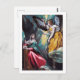 El Greco (1 de outubro de 1541 - 7 de abril de 1614) era pintor, escultor e arquiteto grego da Renascença espanhola. El Greco foi nascer no Reino da Candia (Creta moderna), que na época fazia parte da República de Veneza, e o centro da arte Poste-bizantina. Ele treinou e tornou-se um mestre dentro dessa tradição antes de viajar aos 26 anos para Veneza, como outros artistas gregos haviam feito. Em 1570, mudou-se para Roma, onde abriu um workshop e executou uma série de trabalhos. Durante sua estada na Itália, El Greco enriqueceu seu estilo com elementos do Manerismo e da Renascença veneziana tirados de vários artistas excelentes da época, notadamente Tintoretto. Em 1577, mudou-se para Toledo, Espanha, onde morava e trabalhava até sua morte. Em Toledo, El Greco recebeu várias comissões importantes e produziu suas pinturas mais conhecidas. O estilo dramático e expressionista de El Greco foi encarado com perplexidade pelos seus contemporâneos, mas encontrou apreciação no século 20. El Greco é considerado um precursor tanto do expressionismo quanto do cubismo, enquanto sua personalidade e obra foram fonte de inspiração para poetas e escritores como Rainer Maria Rilke e Nikos Kazantzakis. El Greco foi caracterizado por estudiosos modernos como um artista tão individual que não pertence a nenhuma escola convencional[4]. Ele é mais conhecido por figuras tortuamente alongadas e, muitas vezes, pela pigmentação fantástica ou fantasmagórica, casando tradições bizantinas com as da pintura ocidental. Citação: Wikipedia