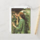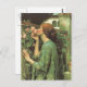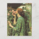 Uma jovem de cabelo vermelho escuro chega em direção a uma rosa escalada para cheirar a fragrância. Belas artes do século XIX por John William Waterhouse.