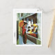 Um cartão-postal de belas artes com a pintura do expressionista alemão August Macke (1887-1914) intitulada Compro Hat (1914). Uma mulher com uma janela de parasita laranja comprando em um compro de chapéu.