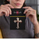 Um cobrir místico com um símbolo transversal proeminente. A design é intrincada e cativante, chamando a atenção dos espectadores para as poderosas imagens religiosas que se exibem.