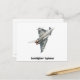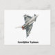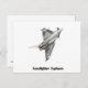 O Eurofighter Typhoon, o avião de combate de múltiplos papéis de asa oscilante de nova geração mais avançado do mundo, visto contra um fundo branco, com o título "Eurofighter Typhoon" em texto preto. A foto foi tirada no Dawlish Airshow em Devon, Inglaterra