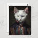Entre num mundo de elegância e sofisticação felina com esta cativante pintura a óleo que apresenta um charmoso gato branco vestido com um terno elegante. A habilidade da pincelada traz à tona os detalhes intrincados do pelo do gato, capturando sua suavidade e pureza. O gato exala uma sensação de postura e confiança enquanto posa em seu terno sob medida, completo com gravata borboleta e lenço no bolso. A justaposição da graça natural do gato e da vestimenta formal cria uma cena deliciosa e caprichosa. O uso magistral de luz e sombra adiciona profundidade e dimensão, fazendo o gato ganhar vida na tela.