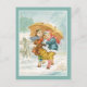 Uma design de colheita encantadora, duas meninas sob um guarda-chuva grande, corajosas no inverno, e estão caminhando em uma tempestade de neve, e parecem estar gostando disso também! Um spray de holly completa a foto. Altere o texto para atender às suas necessidades.