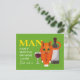 O cartão verde com um divertido design geométrico de gato ruivo, juntamente com a frase engraçada 'O homem não pode sobreviver apenas com vinho... papai disse isso', adiciona um toque lúdico à mensagem. Ele captura a leveza do sentimento, enfatizando a importância do equilíbrio e não depender apenas de uma coisa.