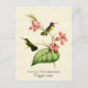 Cartão de posto com uma ilustração da história natural vintage de Antoine-Germain Bevalet, c. 1874, dos beija-flores da Costa (Calypte costae.) Duas beija-flores verdes e douradas percham sobre uma planta tropical com flores cor-de-rosa, sobre um fundo de pergaminho amarelo-ouro claro. Limpo e melhorado digitalmente, mantendo as suas características de colheita. Apresenta nomes comuns e científicos em fontes decorativas.