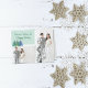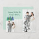 Um Cartão-postal de Natal Moderno com 2 fotos, em tons e azuis, com destaque para o agrupamento de pinheiros em chaleiras e azuis, acentuado com agora flecks. Basta adicionar suas fotos da família e personalizar a mensagem de trás! A parte de trás também é realçada por flechas de neve.