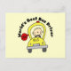 Um grande ônibus escolar amarelo com motorista de ônibus com figura de pau e texto que diz "O melhor driver do mundo" em presentes de motorista de ônibus, T-shirts e outros itens.