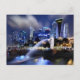 O Merlion Park com a linha do horizonte de Singapura à noite no fundo. A estátua de Merlion tem o corpo de um peixe e a cabeça de um leão, de 8,6 metros, pesa 70 toneladas. Foto de Erwin Soo.