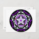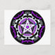 Quinze corvos em torno de um pentáculo pagão branco num campo de roxo com joia roxa central. As joias que representam os elementos com o cabo elético triquetra prateado.