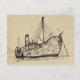 um esboço do navio baleeiro abandonado Petrel, em papel antigo.