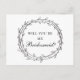 Preto e branco floral "Você será minha dama de honra?" convite.