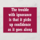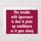 Se você está incomodado com a estupidez (e quem não está?) então você vai apreciar o sentimento por trás dessa linha humorística: "O problema com a ignorância é que ela ganha confiança enquanto ela caminha."