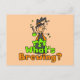 Uma bruxa de palito faz uma poção mágica em T-shirts, camisas, cartas, adesivos, canecas, truques ou sacos de tota, e outras roupa e presentes de bruxa do Halloween. O texto lê O que está Brewing?