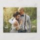 Script de Pincel Moderno Salve o Cartão-Postal de Casal de Noivado de Data - Script Branco com Folhas