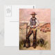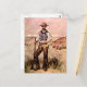 Pintura do vintage de um vaqueiro na frente de sua herdade.