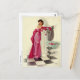 Cartão Clássico PinUp mostrando uma deslumbrante Garota PinUp posando em seu vestido rosa e segurando uma rosa, pintado por Art Frahm (1907-1981)