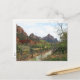 Cartão-postal com a imagem de O vigia, uma ascensão vermelha de arame para uma elevação de 6545 pés. (1195 m), este é o ícone mais fotografado no Parque Nacional de Zion, no sul de Utah, por um casal de razões. Primeiro, é uma montanha rochosa bela e modelada que por acaso encara o vale do Sul e brilha ao pôr do sol. Em segundo lugar, está perto do Centro de Visitantes do Sul e é facilmente visto pela pista de Pa’rus, pavimentada e muito utilizada, que corre ao longo do rio Virgin. Veja o adesivo correspondente. Veja toda a coleção de Cartões-postais Zion na seção CARDS, CARTÕES POSTAIS E ESTICKERS.