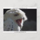 Coruja de neve em perfil com bico aberto
