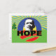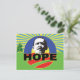 Design gráfico original de um campo verde fresco sob o céu azul estendido com raios solares amarelos, foto de Barack Obama sobre seu logo de campanha com texto negro em negrito, Hope.