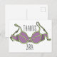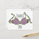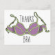 Um sutiã roxo e verde lima, com o texto dizendo, "Obrigada Sutiã."