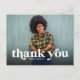 Diga um grande obrigado com este cartão postal de fotos ousado, obrigado nota. Apresentando uma fotografia horizontal e uma tipografia simples do estilo de devolução em branco, esta placa é projetada para coordenar com a coleção de Formandos Design Bold de Lea Delaveris. Perfeito para o obrigado da formatura, este design é versátil para trabalhar para todas as ocasiões como casamentos, chás, presentes para bebês e muito mais.