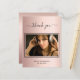 Um aniversário de 21 anos elegante e moderno - Obrigado, postal, personalizado com sua própria foto. Adicione sua própria foto, seu nome, um encontro e a nota de agradecimento. Uma placa de aparência metálica suja e glamourosa rosa dourada. O texto: Obrigado na frente e seus nomes no verso são escritos com um script com na moda.